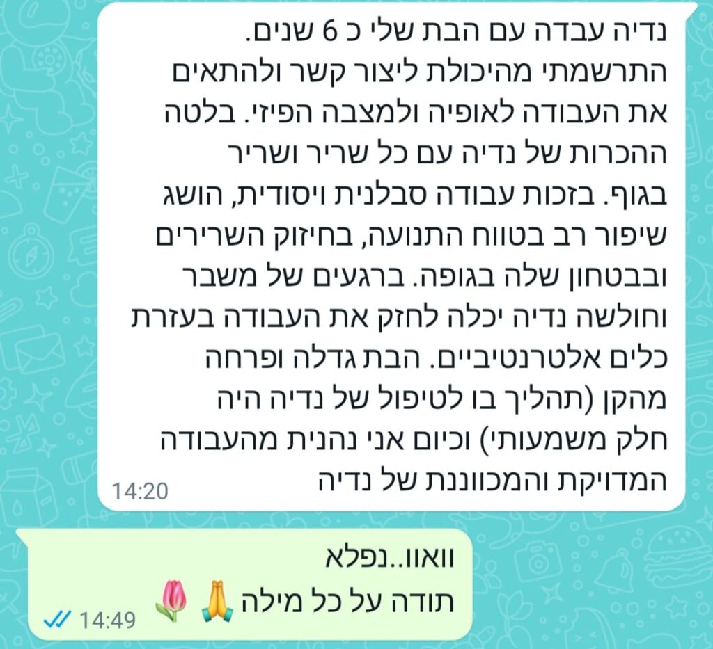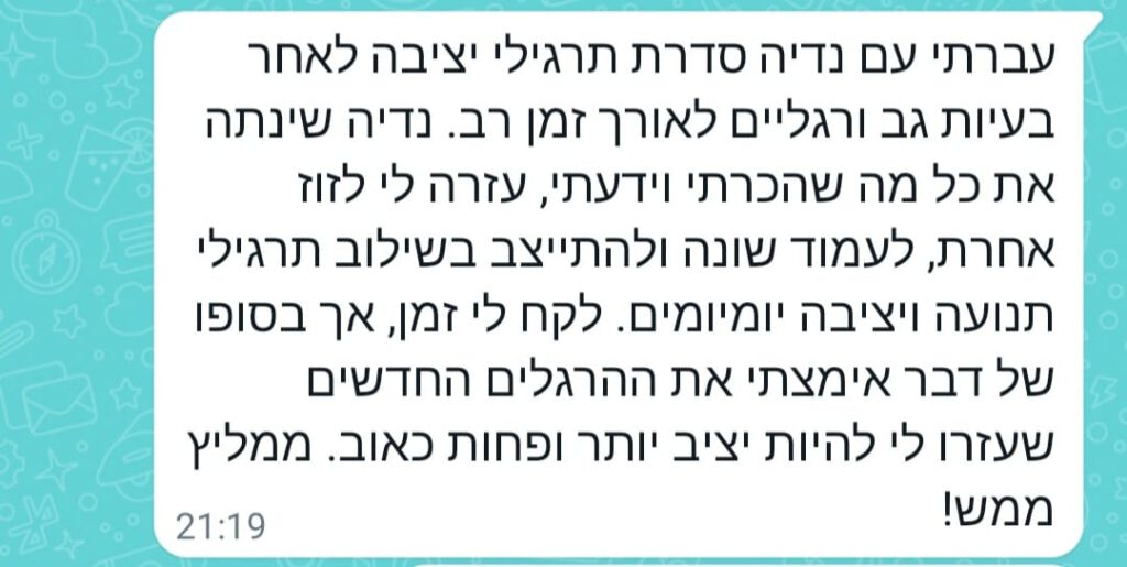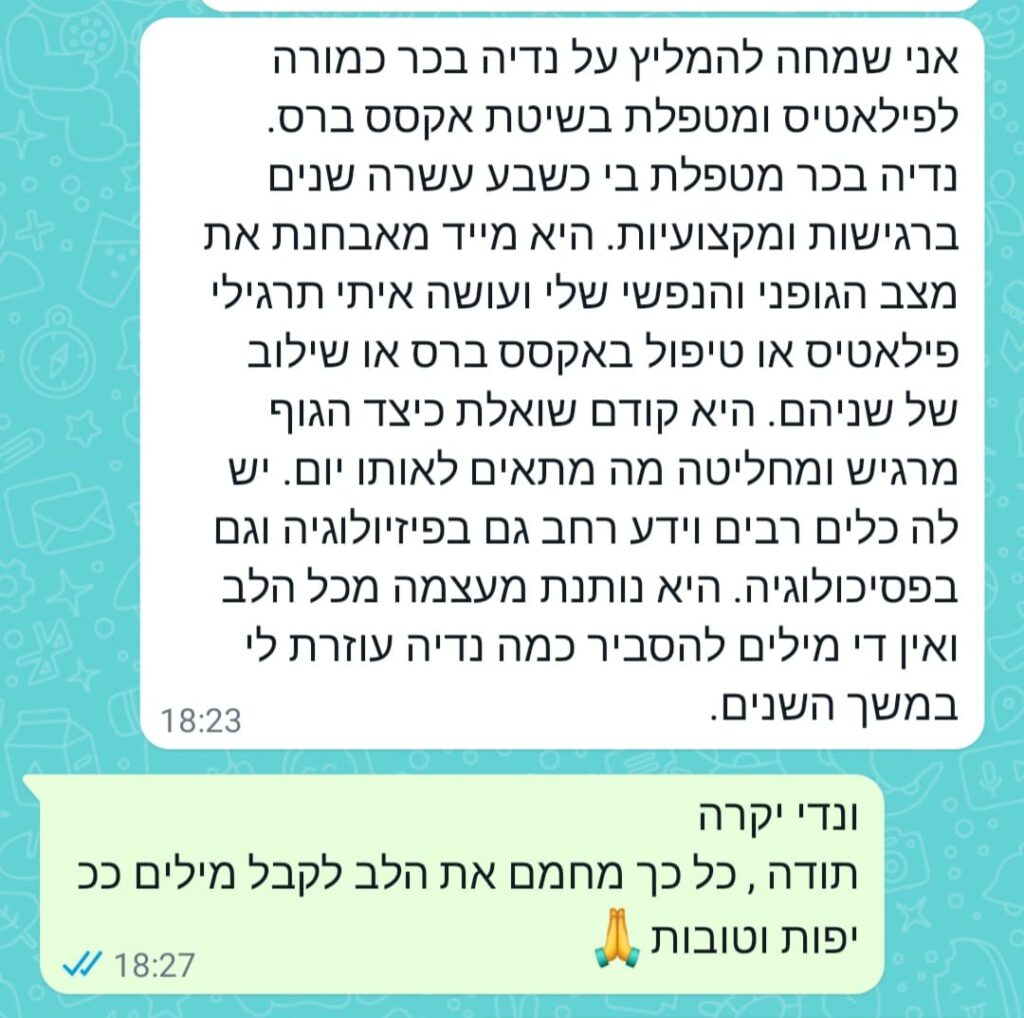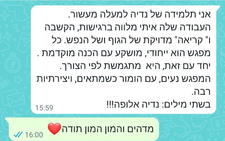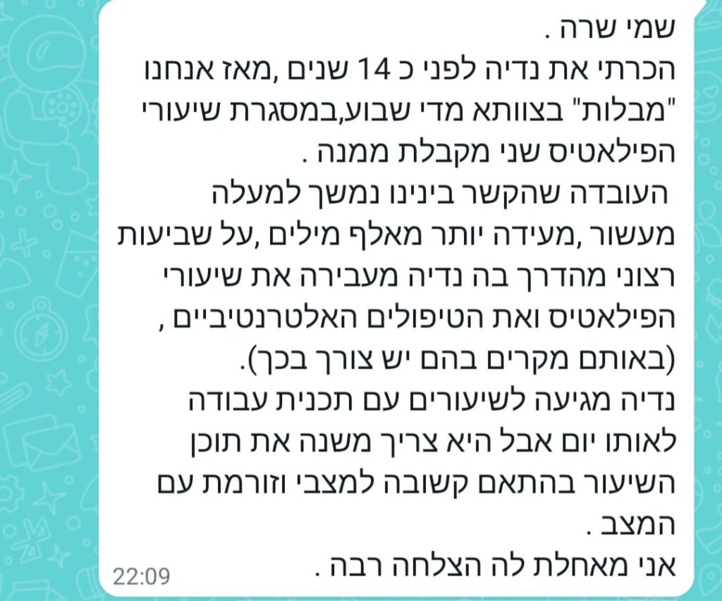 נדיה בכר צבי מדריכה לתנועה ויציבה הכרתית, פילאטיס, מטפלת לריפוי גוף נפש
